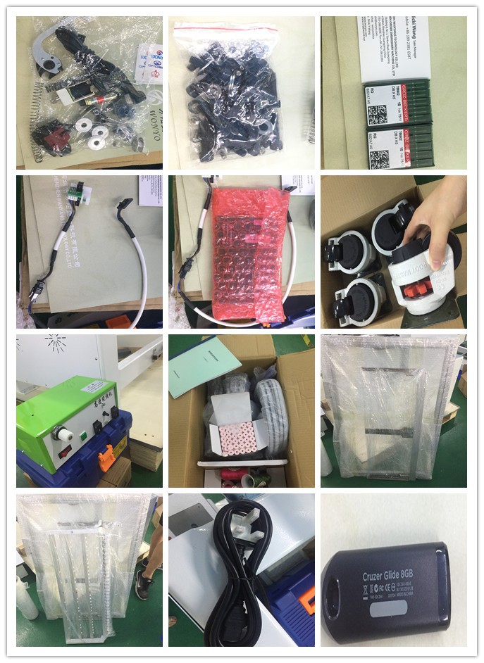 Zubehörteile | 1. Extended Flachbett-Sticktisch mit Ständer Unterstützung für Stickmaschine 2,4 Stück Fußräder für den Kunden, um die Maschine leicht zu bewegen (wenn der Kunde es von einem Ort zum anderen bewegen muss) 3. Bedienungsanleitung in Englisch, Kurzanleitung in einer Seite 4. Toolkit mit häufig verwendeten Werkzeugen und 10 Nadeln, 1 Hubgerät, 1 Platine frei gesendet 5.8G USB Treiber 6. Bobbin Wickler | ||
